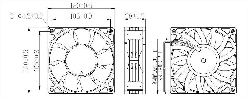 EC轴流榴莲视频污版官网12038A安装尺寸图纸:
